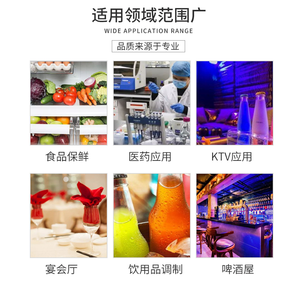 管冰機(jī)因其生產(chǎn)冰塊形狀為不規(guī)則長(zhǎng)度中空管型而得名。目前管冰是常見(jiàn)的食用冰,冰塊晶瑩透亮,抗融性好,深得客戶(hù)的青睞。 不同區(qū)域的客戶(hù),對(duì)食用冰的使用習(xí)慣不同,導(dǎo)致有些區(qū)域和國(guó)家的客戶(hù)對(duì)管冰更加青睞。管冰遍布于: 食物冰藏保鮮、醫(yī)藥應(yīng)用、KTV、宴會(huì)廳、飲用品調(diào)制、賓館、酒店、酒吧、西餐廳、快餐店、冷飲 店、啤酒屋等需要冰塊的地方。