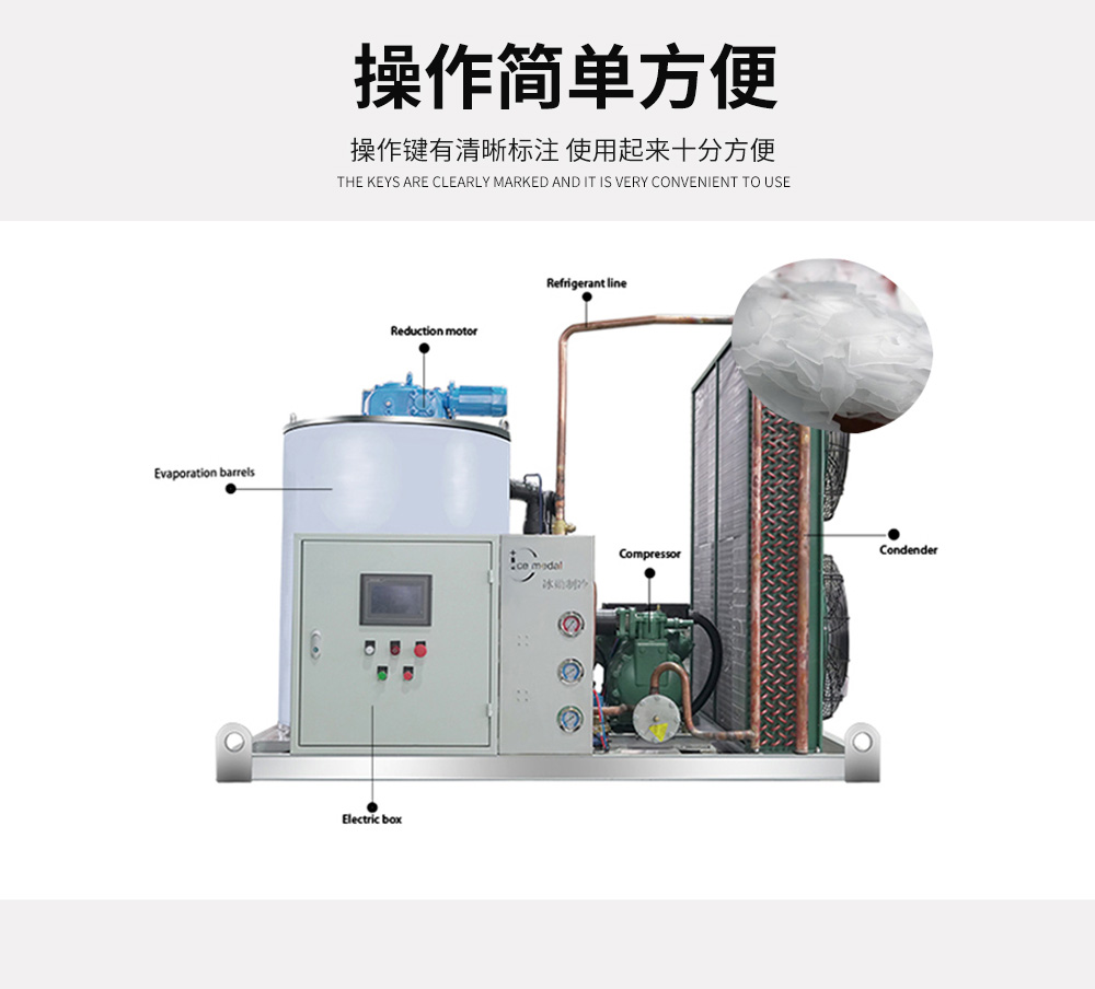 片冰機,制冰機的一種,片薄、干爽疏松狀的白色冰。平面形狀不規(guī)則,厚度15毫米 —22毫米,直徑約為12 - 45毫米。 片冰質(zhì)地干燥、柔軟無尖銳棱角,不會刺傷冷凍物體。冷藏包裝過程中其扁平的外型將盡可能避免傷害到被冷藏物,對被包裝食品起到保護作用。 片冰具有大接觸面積、快速制冷、儲藏運輸便捷、減少熱交換,保持冰的溫度等特點。自動片冰機采用先進的立式螺旋刀切冰式蒸發(fā)器,制冰時由冰桶內(nèi)部的分水裝置將水均勻的分灑至 冰桶內(nèi)壁快速結(jié)冰,冰成型后由螺旋冰刀切冰落下。